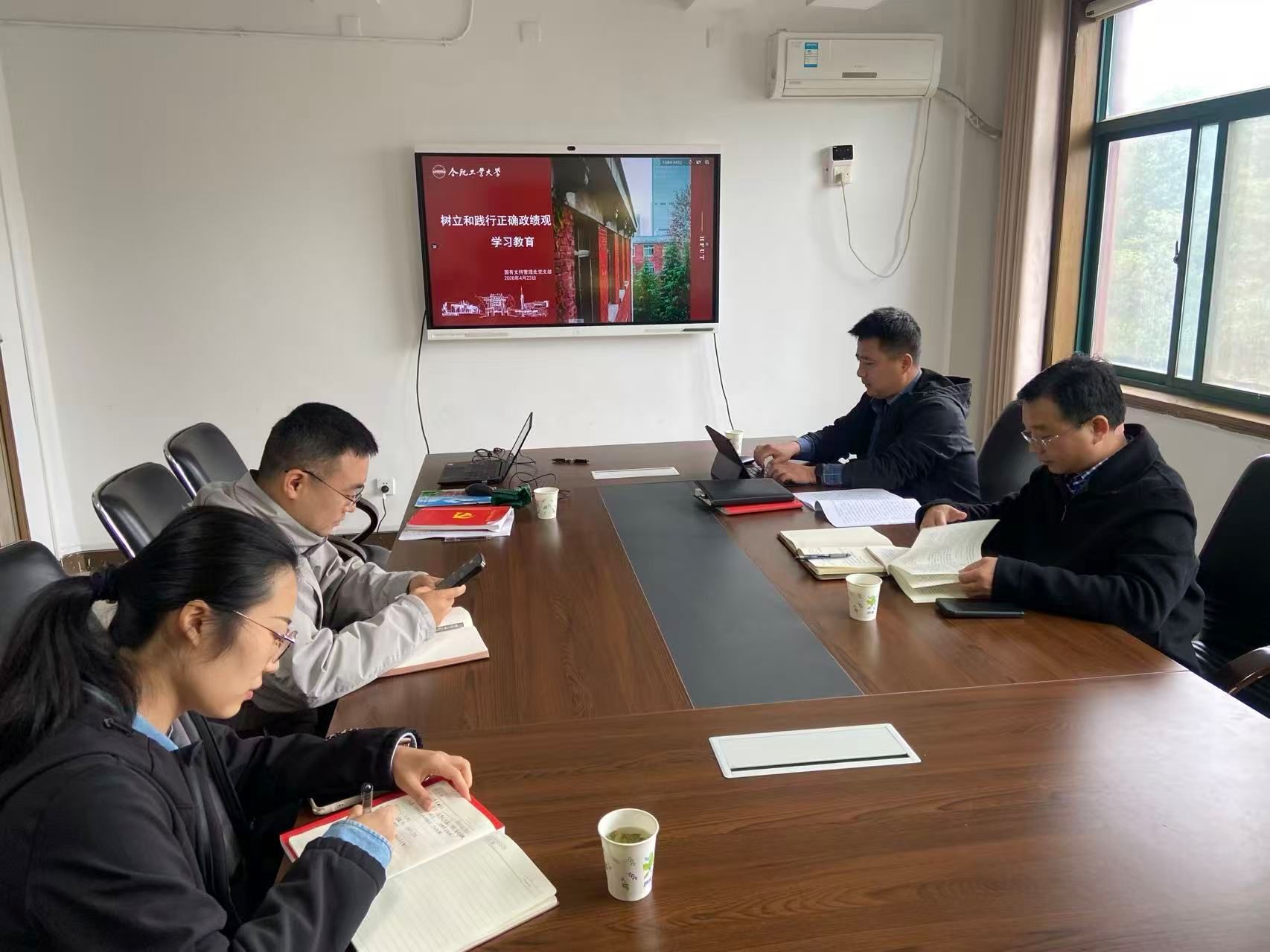 4月16日上午,国有资产管理处党支部在办公楼(二)123室开展集中学习,组织学习《习近平关于树立和践行正…